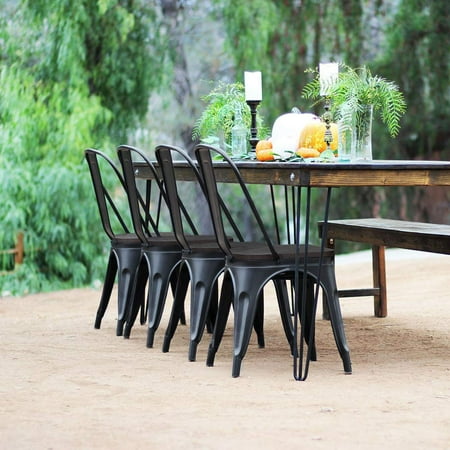 | 4 pieces metal dining stools, set of 4 stackable style metal wood dining chair.